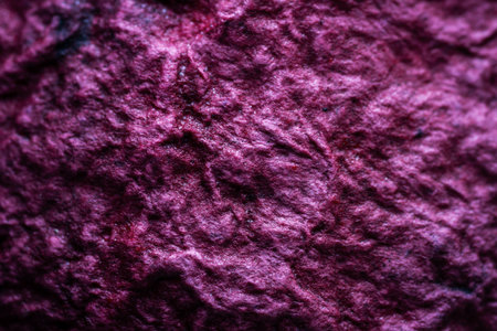 Extreme close up of purple handmade paper clay with a structure and rough texture. Paper recycling. Selective soft focus, shallow depth of field.