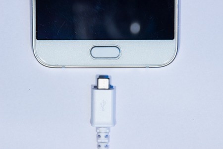 White usb cable port charger close up