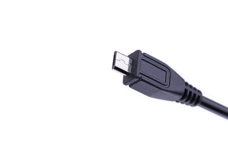 Close up of black USB cable isolated, cable USB connection.