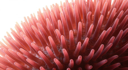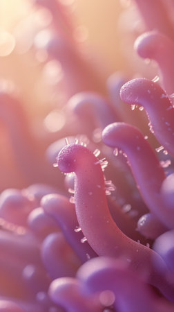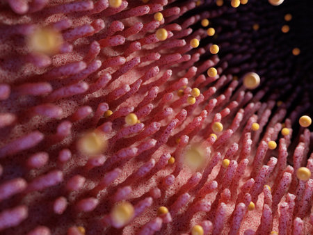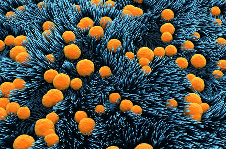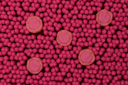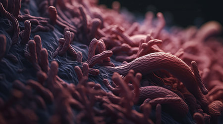 medically accurate illustration of intestinal villi.Red microvilli in a intestinal tract. close-up, Microbiology, anatomy, biology, science, medicine, medical and healthcare concepts. 3D Rendering