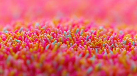 A vibrant close-up of colorful sprinkles in shades of pink, yellow, and blue. This fun texture adds a playful touch to desserts and celebrations. Ideal for food photography.