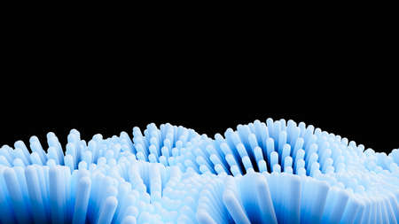 Perforated surface with straight 3d shapes moving up and down through the holes. Design. Wavy motion of abstract shapes.