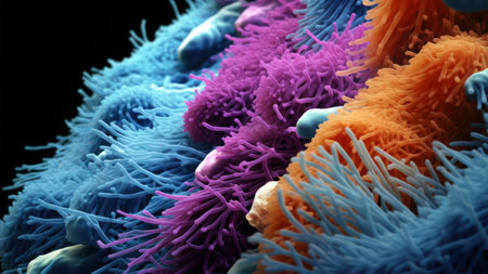 An AI generated illustration of a macro photograph of a colony of bacteria, forming a visible biofilm