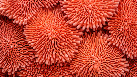 corals with a seaweed texture, showcasing hyper-realistic details and soft, rounded forms. the flowing draperies add a touch of elegance to the scene, while the light crimson hue enhances the realistic hyper-detail. the vibrant colors create a mesmerizing moebius effect, making the corals appear tactile and inviting. ai generated