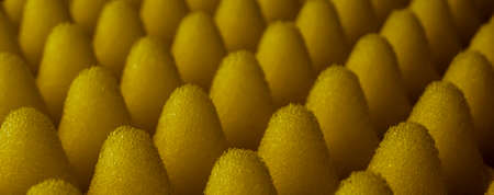 Fluffy yellow growths spread over textured purple surface displaying abstract organic pattern and vibrant contrasting colors.