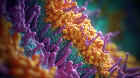Colorful microorganism cells close up. illustration in high details for medical education and science. ai generative.