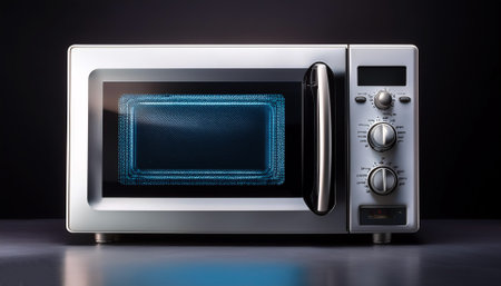 A modern stainless steel microwave oven shines against a black background, highlighting its sleek design and efficient functionality for everyday cooking needs.