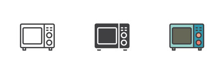 Microwave oven different style icon set. Line, glyph and filled outline colorful version, outline and filled vector sign. Symbol, logo illustration. Vector graphics