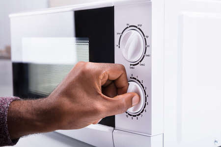Close-up Of A Man's Hand Adjusting Temperature Of Microwave Oven