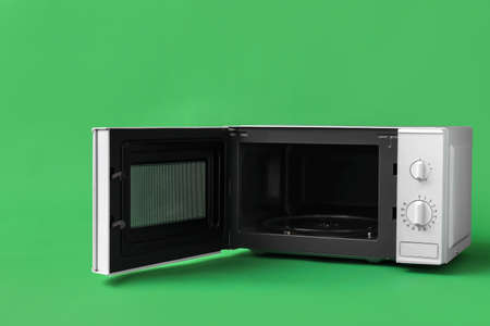using a microwave oven. power regulator, temperature control. Microwave Oven. open microwave. close-up. copy space