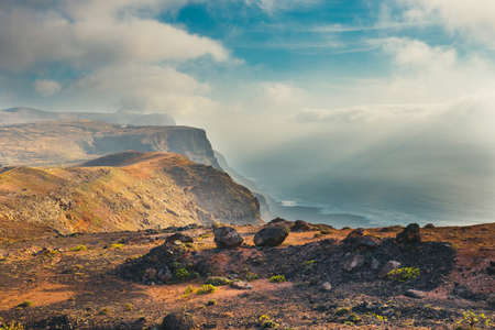 Gran Canaria, landscape of steep eroded north west coast of Galdar and Agaete municipalities, hike between villages Sardina del Norte and Puerto de Las Nieves