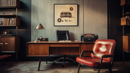 Inspiring office interior design Retro style Lounge featuring Vintage decor architecture. Generative AI AIG 31.