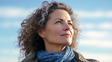 Shot of beautiful mature woman looking for the horizon while relaxing in nature. Generative AI