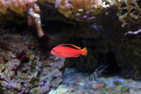 tropical animal in a salt water fish tank aquarium under water. Flash light can kill the animals so the photo was taken with available lights and reflectors