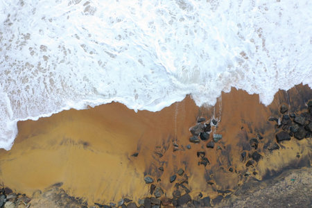 ocean and beach aerial top view, foam pattern