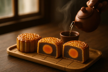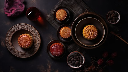 Mid-Autumn Festival, appetizing mooncakes with space for text and design. With Generative AI technology.