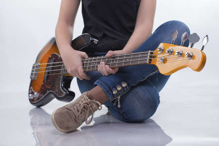 Sitting girl with bass guitar