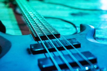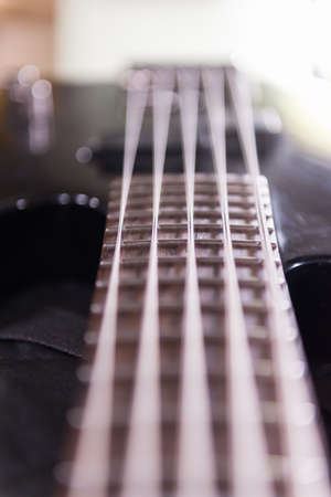Bass guitar and strings close-up. Soft focus