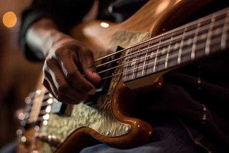 Immersed In Captivating Melodies: A Musician's Passionate Rendition On The Bass Guitar. Concept Soothing Nature Sounds, Mindful Meditation, Creative Writing Prompts, Diy Home Decor Ideas.
