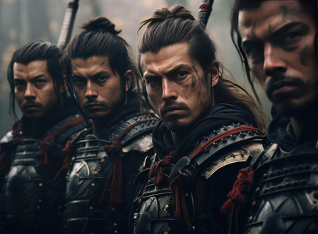 Medieval formidable knights prepare for historical battle. A historical medieval concept. Generative AI Art.