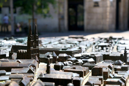 Zagreb, Croatia - June 20, 2017: Outdoor bronze model of landmark buildings in central Zagreb, Croatia.