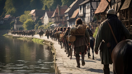 Pilgrims embarking on a medieval journey
