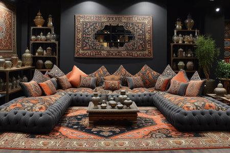 Cozy Textile and Rug Shop with Colorful Patterns and Traditional Designs