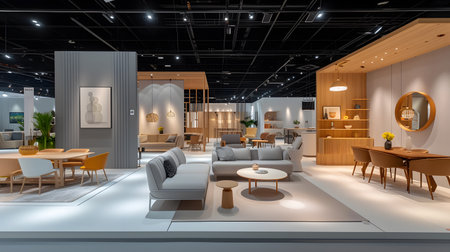 large exhibition booth in nordic style Simply decorated With minimalist furniture