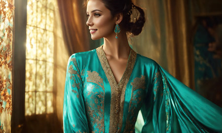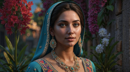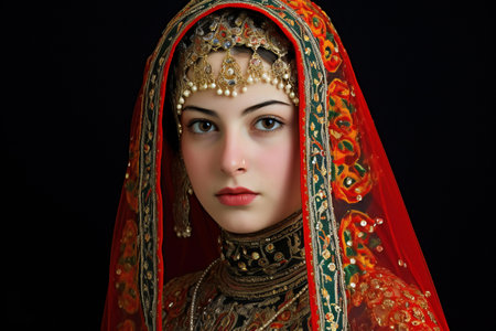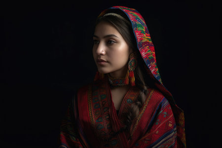 shot of a beautiful woman in traditional clothing, created with generative ai