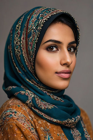 profile portrait close up of a beautiful middle eastern woman wearing a hijab