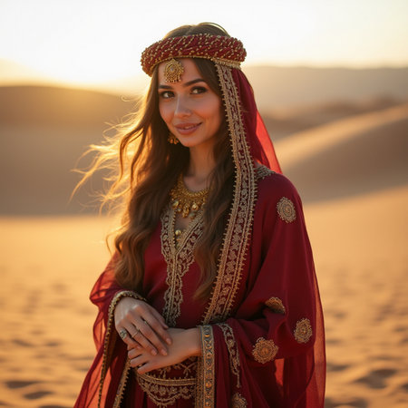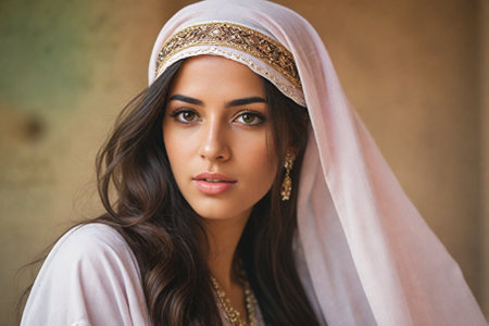 Young woman poses in ethnic dress, capturing the beauty of middle eastern culture