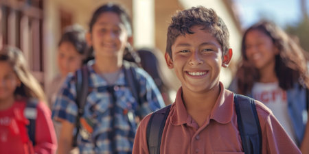 Latino students eagerly entering school on the first day back