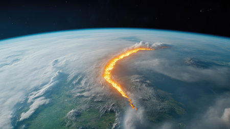 Planet earth during a hurricane as Seen from Space: A Stunning View of Nature's Fury, cinematic scene like a movie