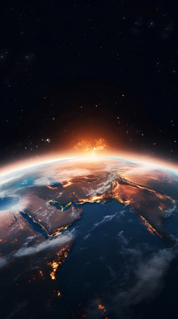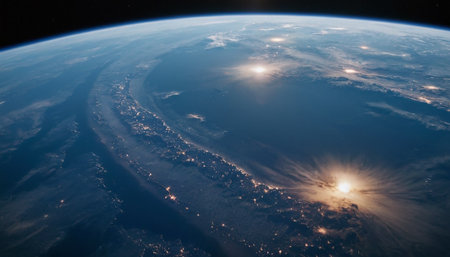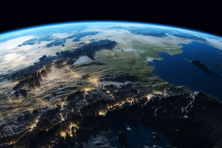 View of Earth from Space with City Lights in the Background A Stunning Overview of Urban Civilization at Night