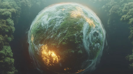 A stunning view of Earth surrounded by lush greenery, highlighting the beauty of nature. This image captures the essence of environmental harmony and vitality.