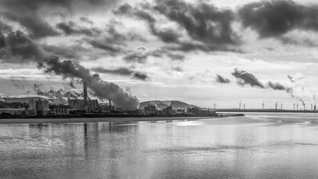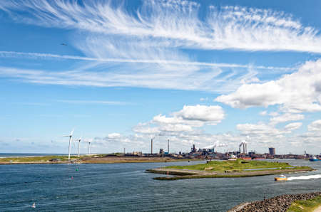 IJmuiden, The Netherlands, December 22, 2018: view across Northsea Canal towards the Tata steelworks under a dramatic sky