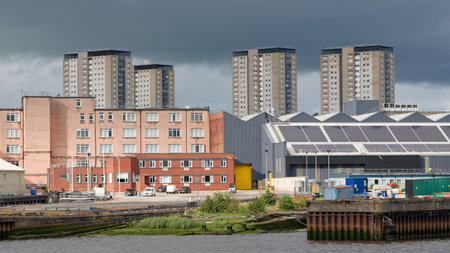 Leeds City scape featuring towerblocks and skyscrapers . In the United Kingdom
