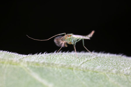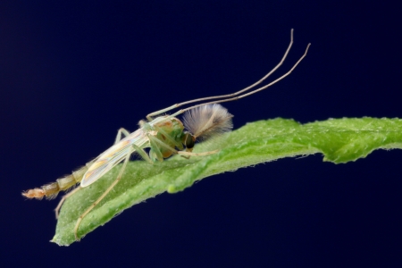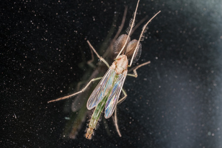 Mosquito, gnat sitting on leaf. Macro, close up phto of animal