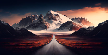 Asphalt road stretching into the distance, cloudy landscape AI generated image