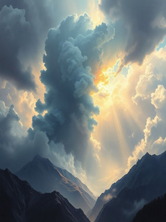 Panoramic photograph of the Swiss Alps with winding mountain roads, dramatic clouds, and sun rays piercing through the clouds. Highly detailed, shot on a Canon EOS R5 camera. --ar 8:3 --stylize 750 --v 6.1 Job ID: d5643b16-aca6-44c5-96fa-be4dbeb7a2d8