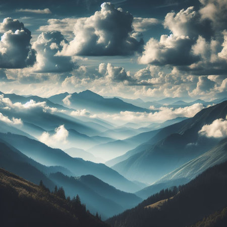 mountain landscape unfolds with a serene and calming vibe, showcasing majestic peaks, lush green forests, and a tranquil atmosphere, perfect for relaxation and meditation, evoking feelings of peace and serenity, ideal for nature lovers and photography enthusiasts alike. ai generated