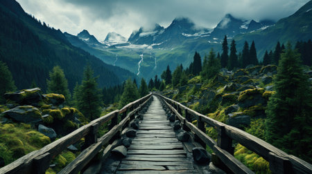 bridge mountains fog moody peaceful landscape freedom scene beautiful nature wallpaper photo wall art poster