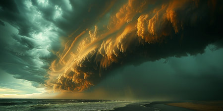 A strong hurricane over the sea with rain and lightning, the sky is covered with heavy clouds, Generated by AI