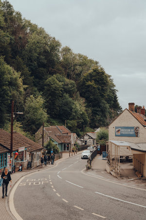 Cheddar, UK - July 26, 2020: Road going through Cheddar, a village famous for its Gorge and is the birthplace of world famous cheese.