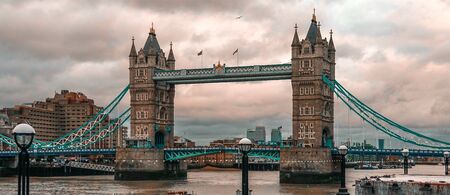 Tower Bridge in London city, United Kingdom with thick clouds on the background. Panorama