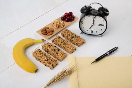 Delicious and healthy breakfast concept - cereal, Porridge and Energy bar 158