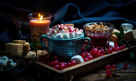 Warm up with cozy delights featuring hot chocolate topped with marshmallows and an array of cookies. Perfect for winter evenings and festive gatherings.
