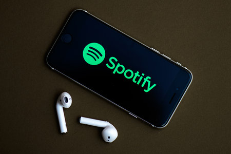Mexico City, Mexico - Nov 9 2022: Spotify a digital music, podcasts and video service that gives you access to millions of songs and other content from creators around the world