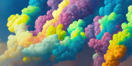 Multicolored clouds of smoke. Toxic color, cartoon composition.