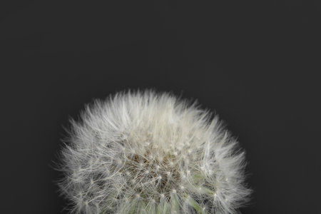 Fluffy white fluffy dandelion flower on a black background. Fluffy white Taraxacum. Dandelion flower seeds. Botany. Meadow plants Taraxacum. The beauty.